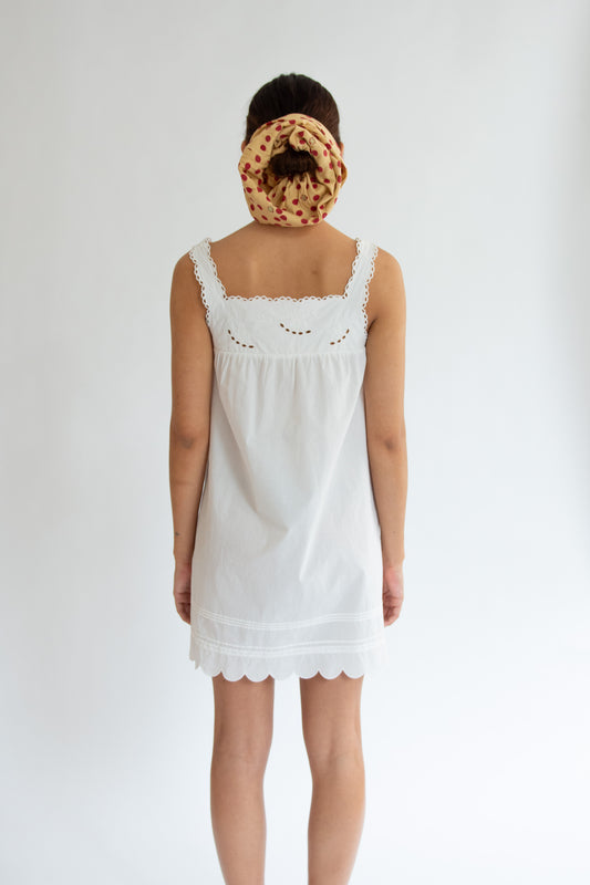 Blockprint Dot Rucha Dress, Tea Stain Red w. Tiger Embroidery