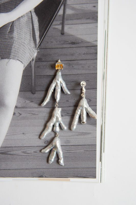 Paw Drops Earrings, Silver/Citrine