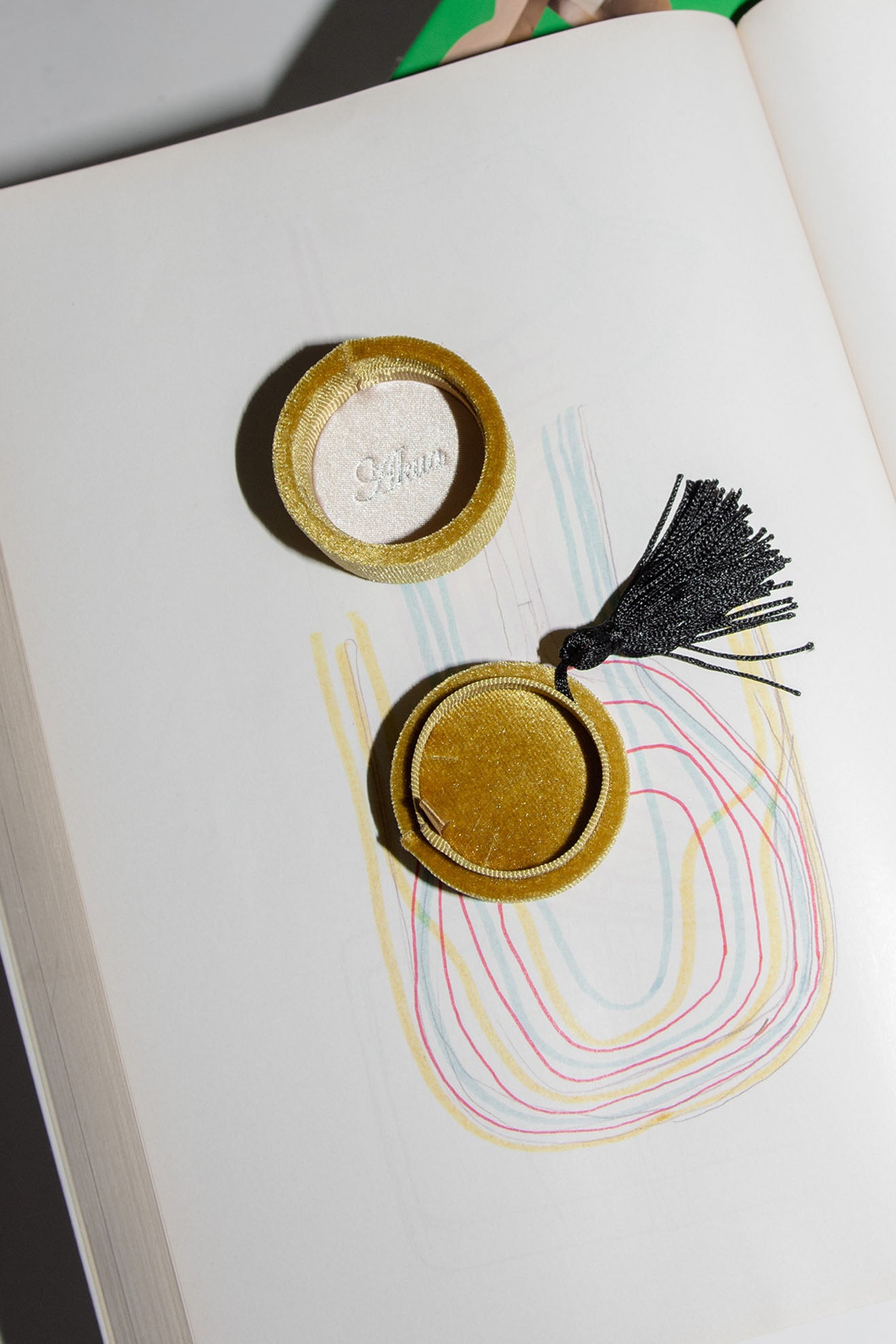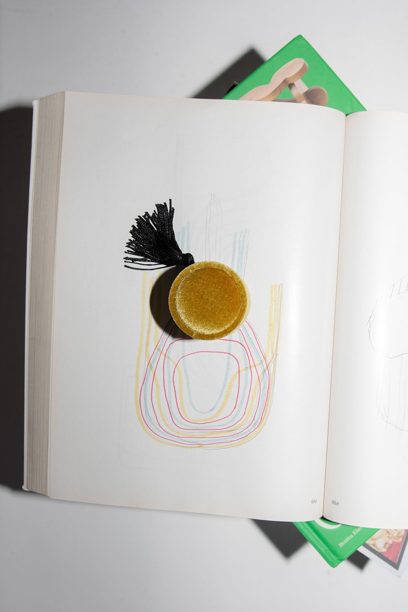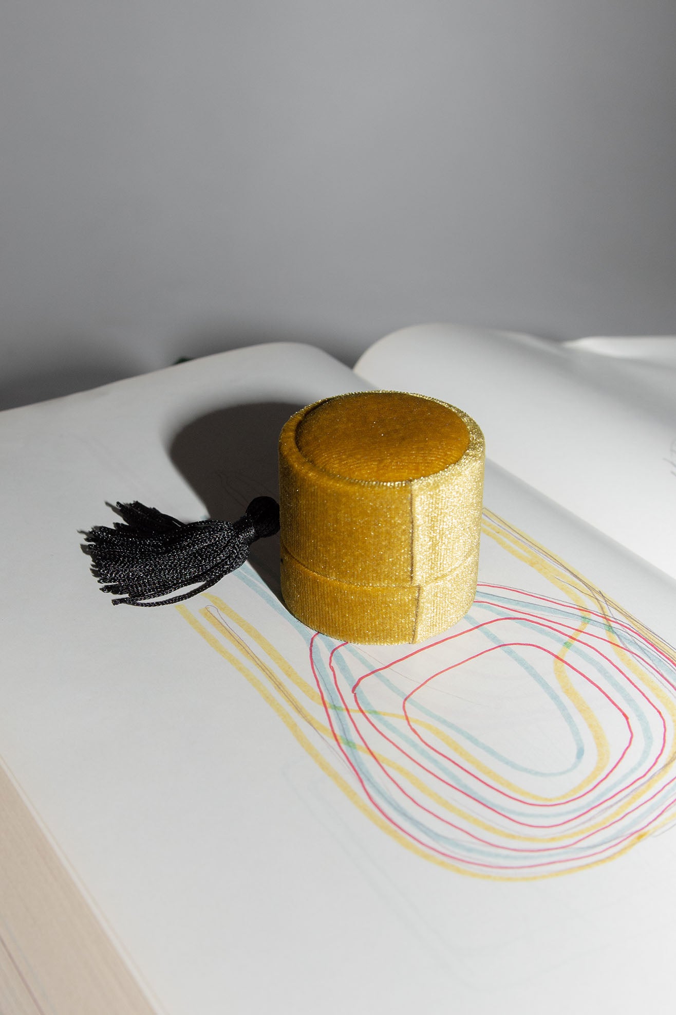 Small round storage box in Green Tea tone. Velvet-covered with matching tassel detail. Suitable for jewellery or small objects.