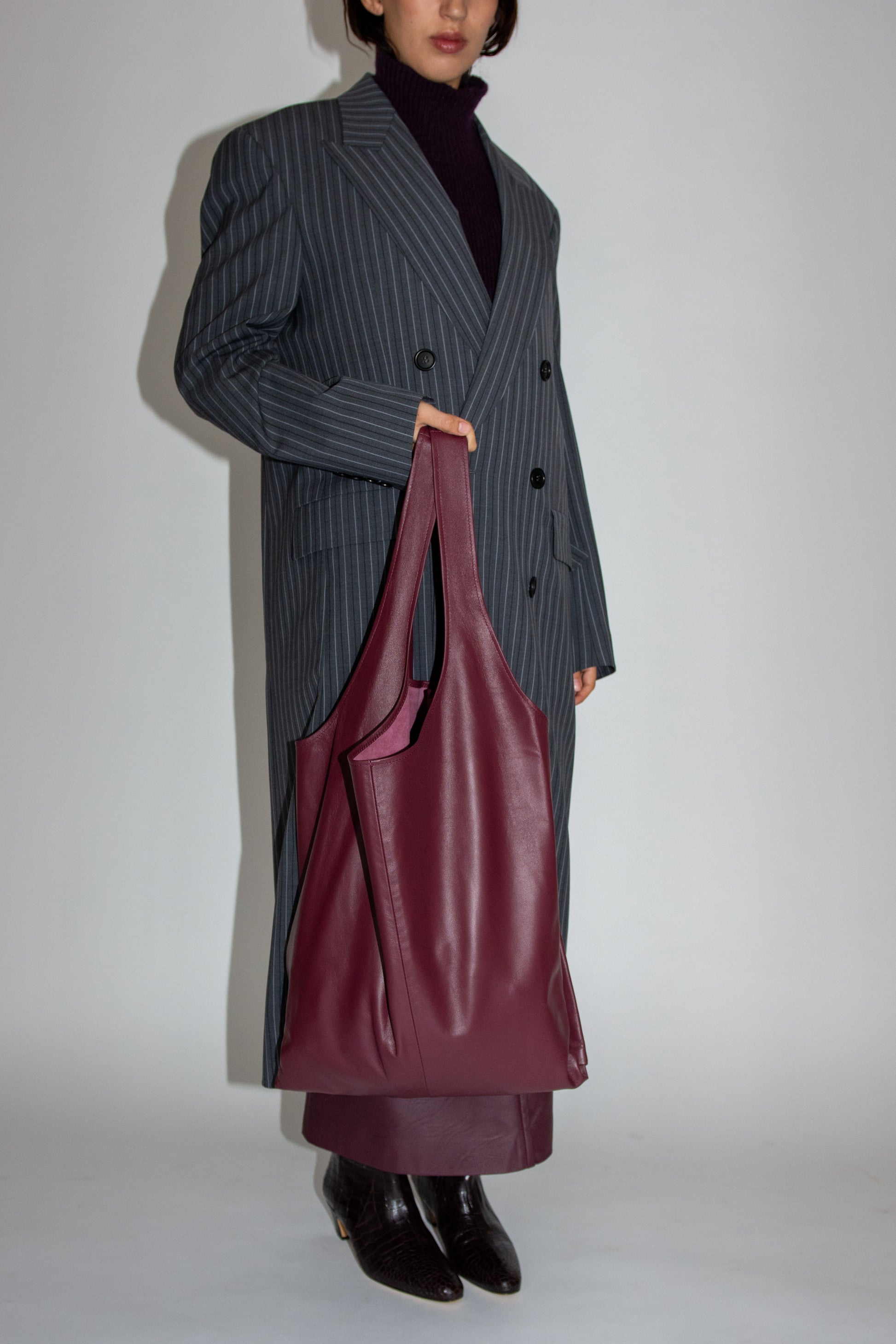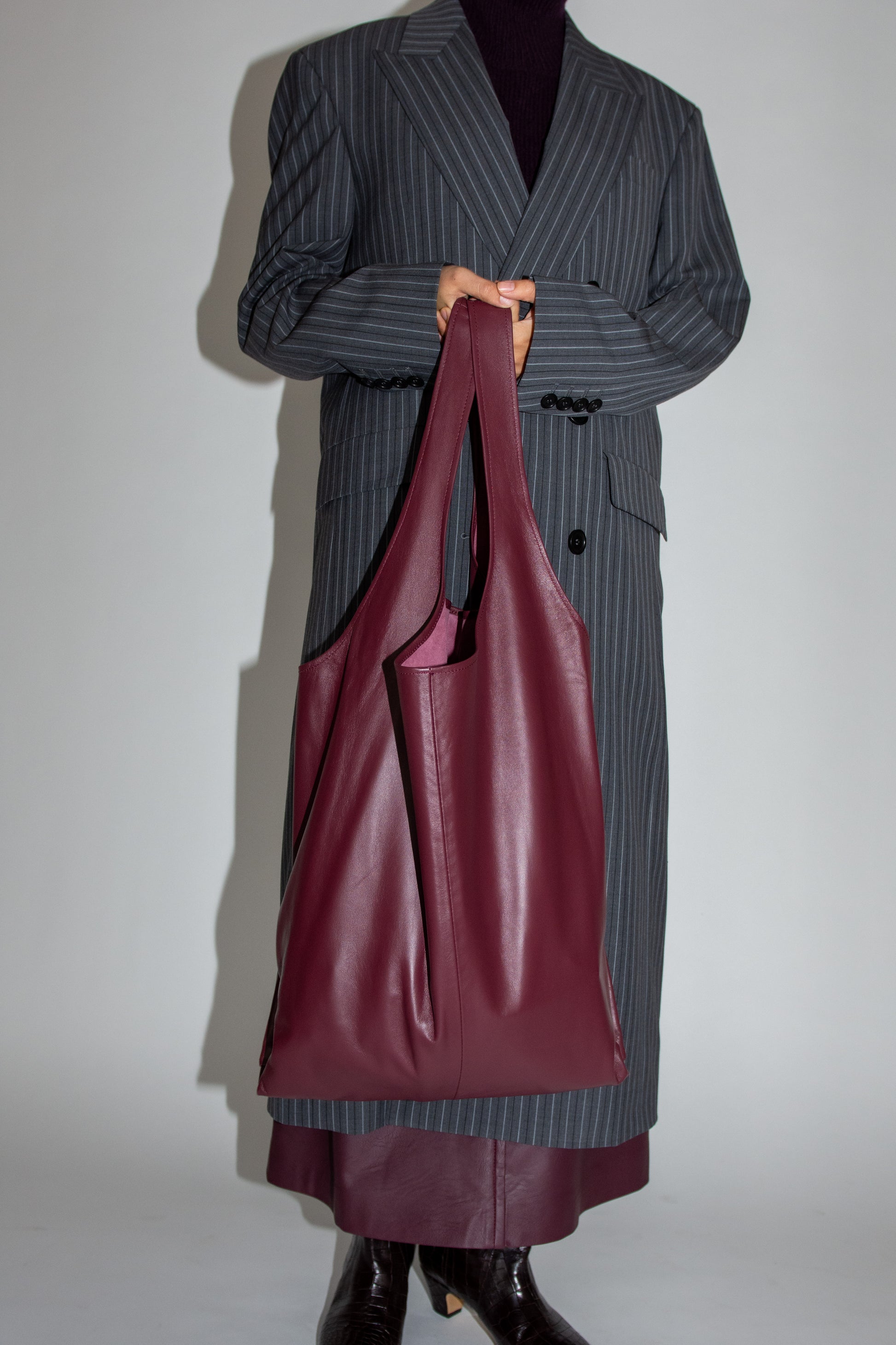 Extra-large shopper, in Burgundy red leather. Holds Everything. Unlined.