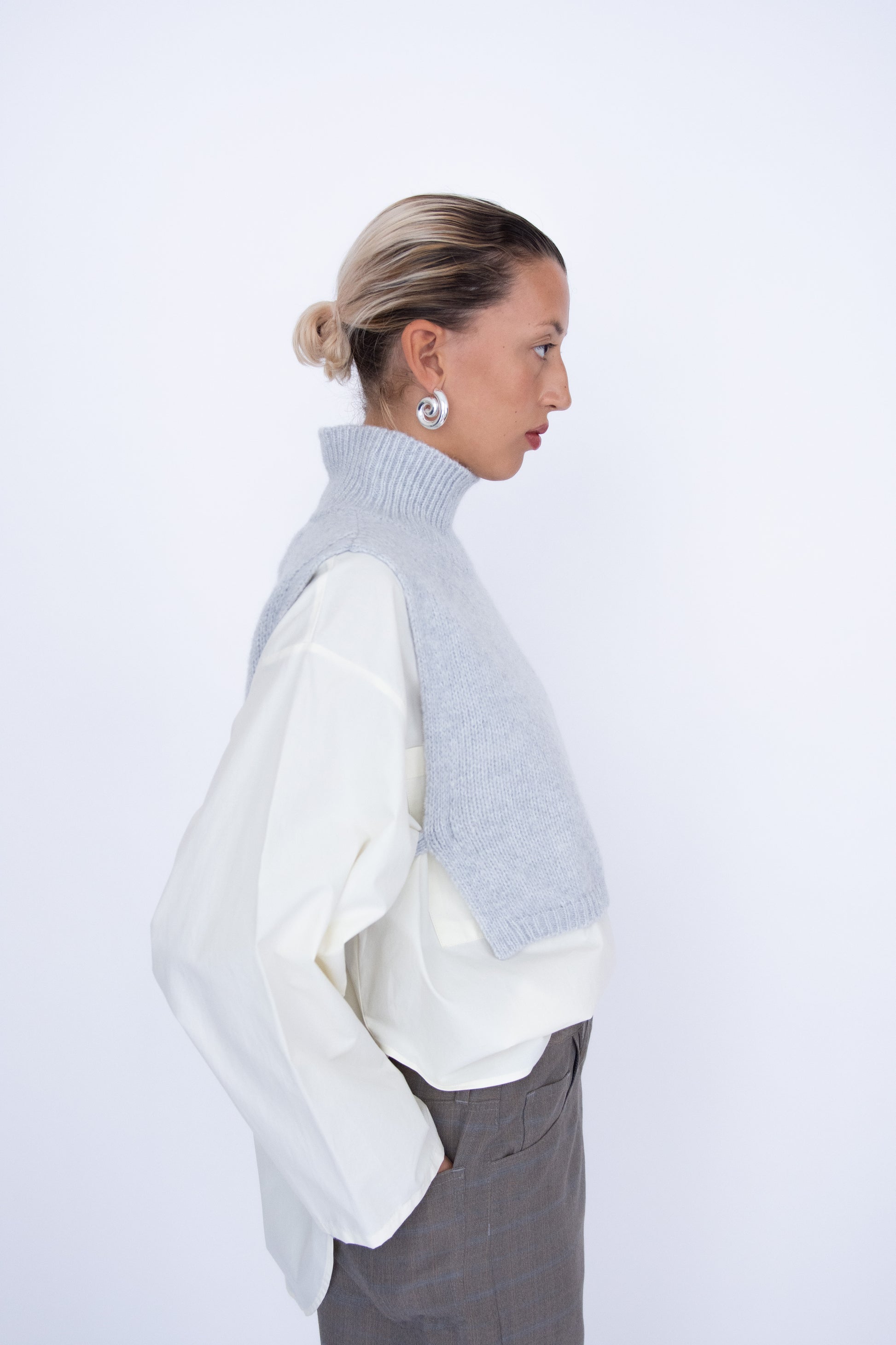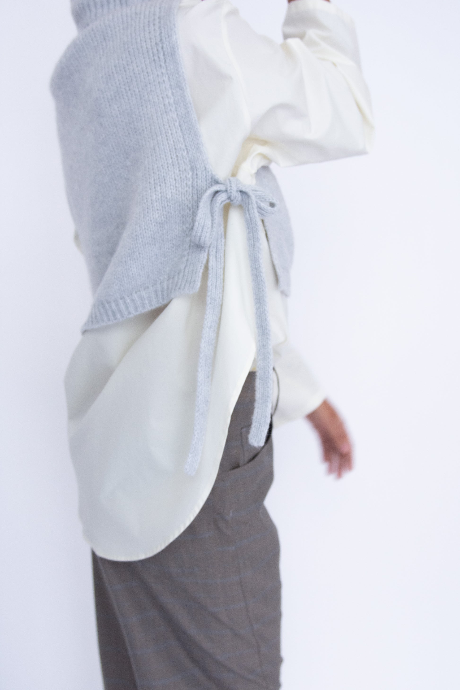 Relaxed fit, adjustable ties at sides. High neck. Hits at high waist.