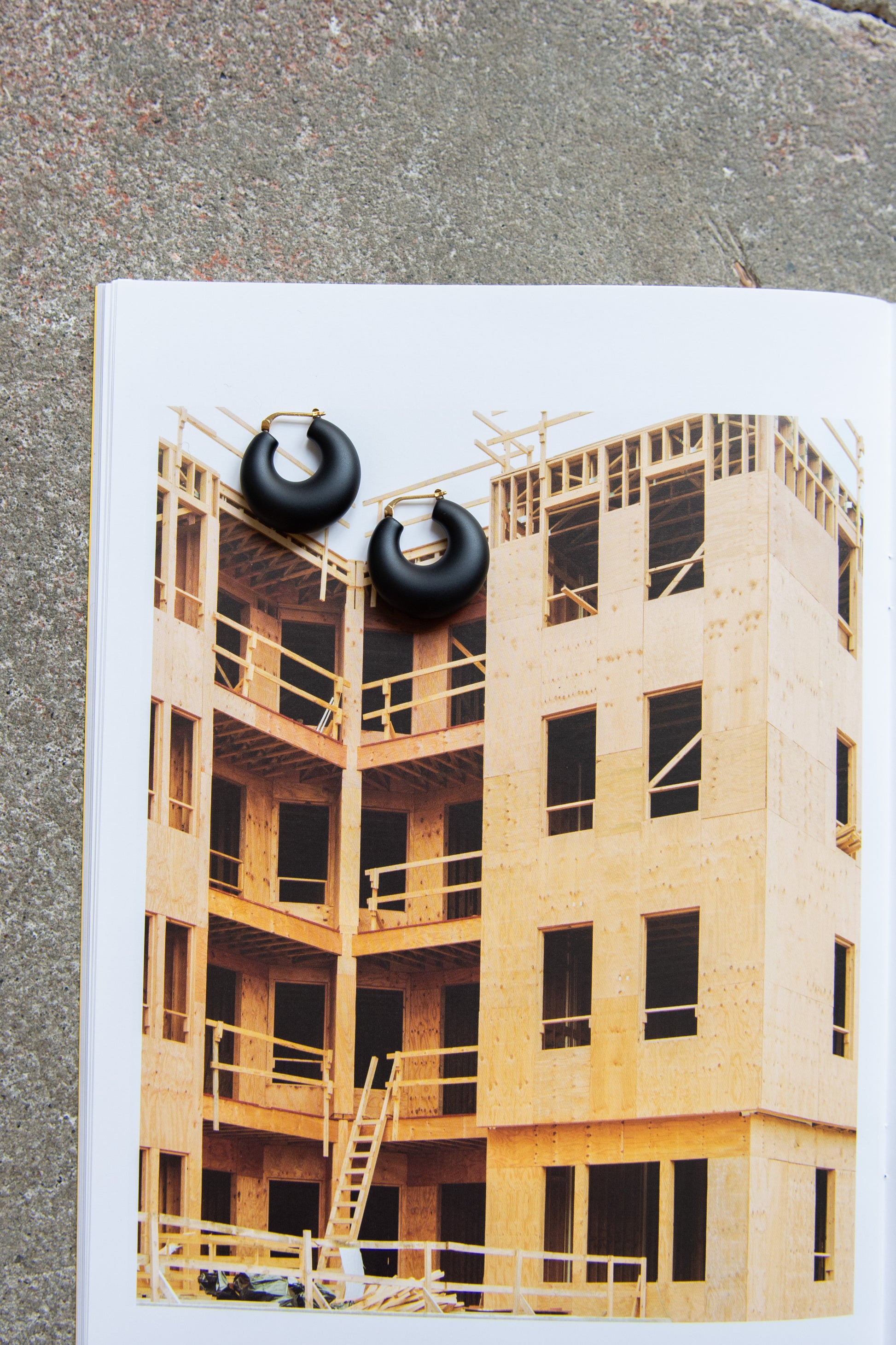 A chunky hoop earring with hinge closure made in Black matte methacrylate. Made for pierced ears with surgical steel nickel free plated brass.