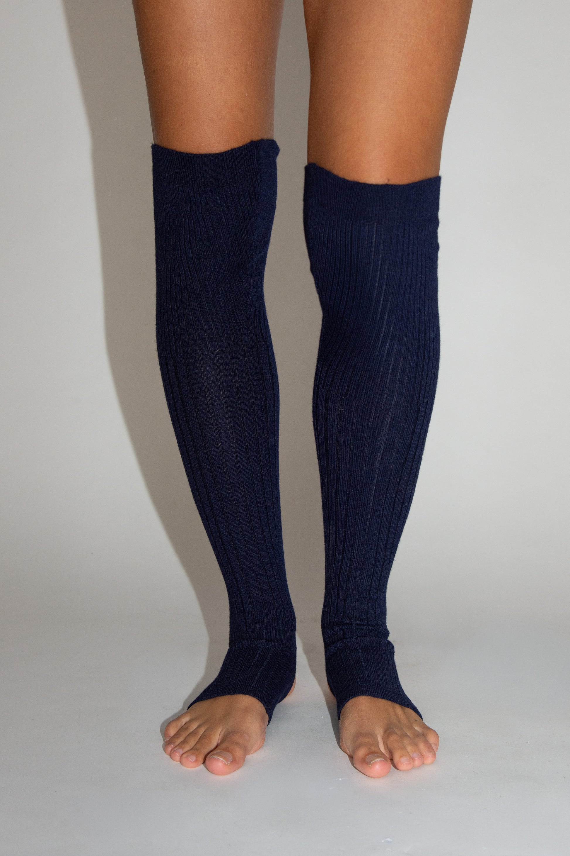 Navy Blue ribbed low-stirrup socks in 100% luxurious Baby Alpaca. Soft cuff.
