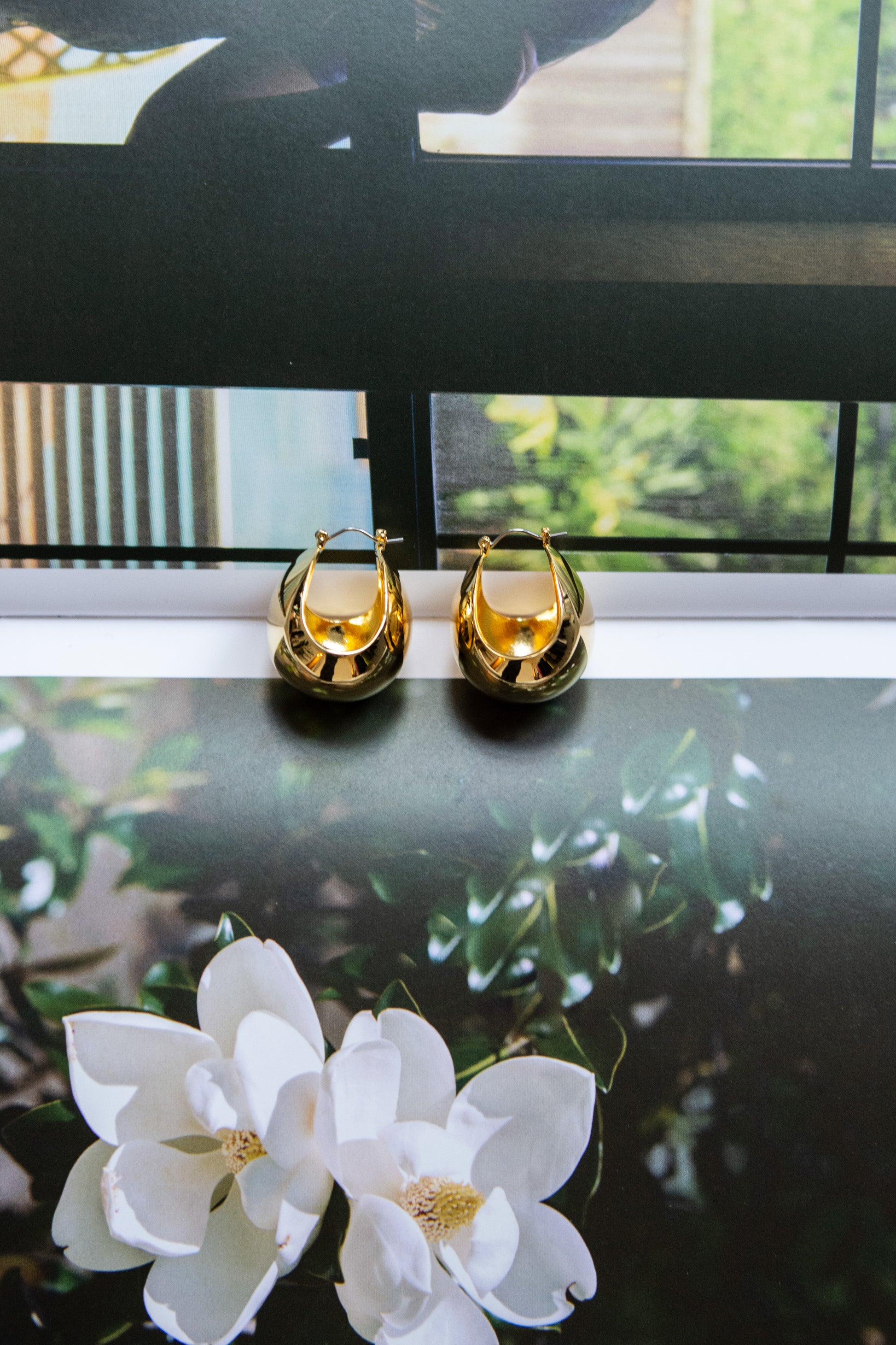 Chunky large hoop earrings in 12k Gold Plated Brass. Hinged fastening.