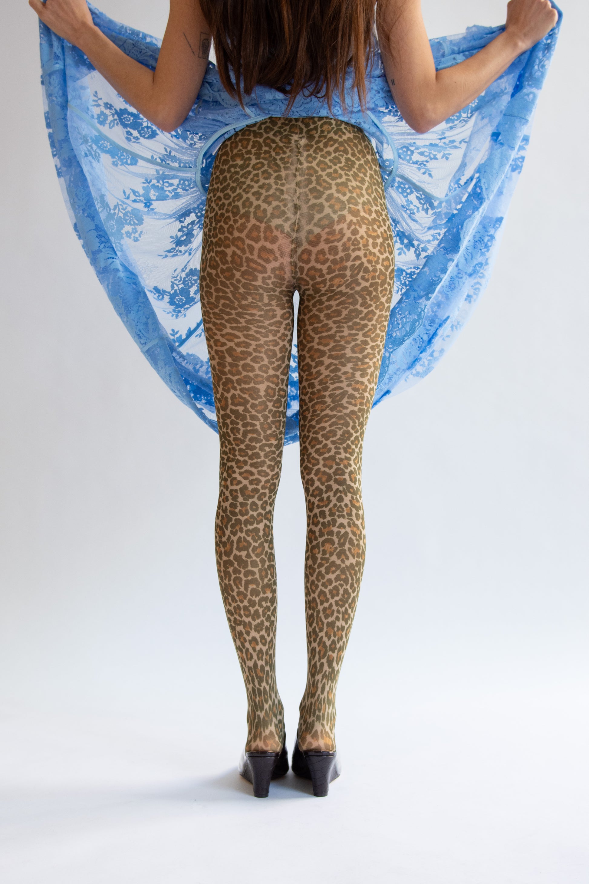 Tights in leopard print 60 denier recycled polyester. Broad waistband. Semi-opaque. Toe reinforcement.
